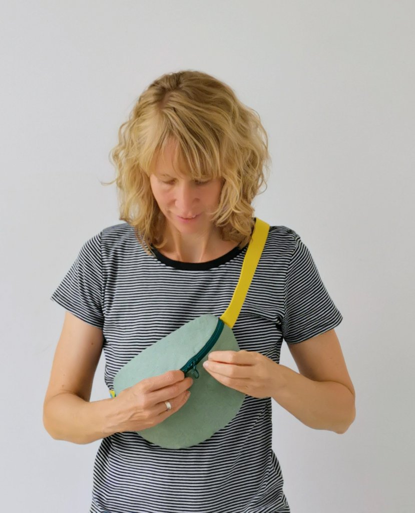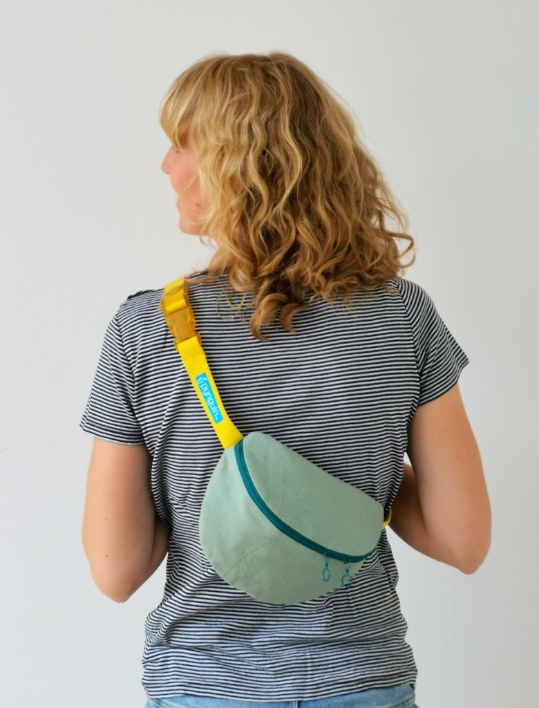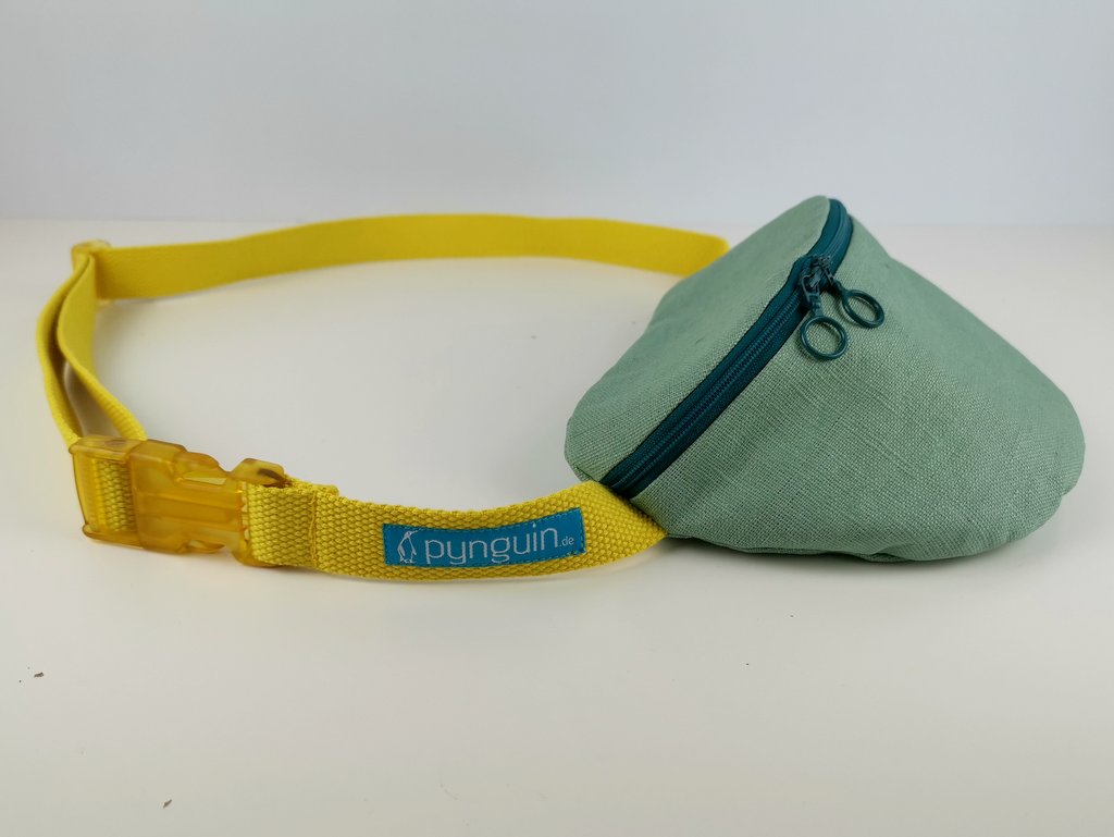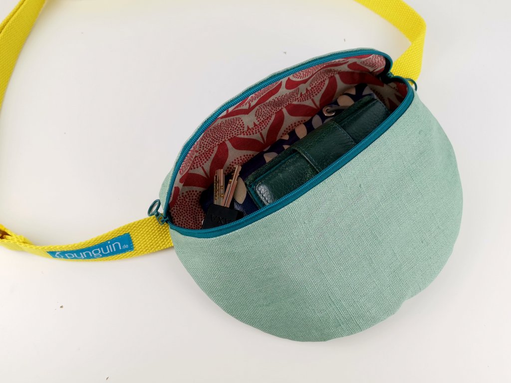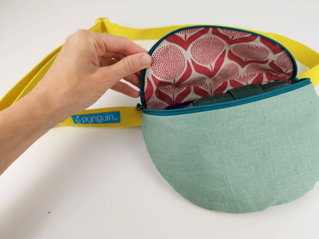 Hier passt das Handy, das Portemonnaie und auch ein Paket Taschentücher locker hinein. Trotzdem ist die Bauchtasche kompakt und nicht zu groß und passt sich gut an. Sie kann auf den Hüften oder quer als Crossbag getragen werden. Die zwei Zipper mit kleinen Rundgriffen ermöglichen Dir die Tasche in beide Richtungen zu öffnen. Von Innen ist sie mit einem dickeren Baumwollstoff gefüttert.