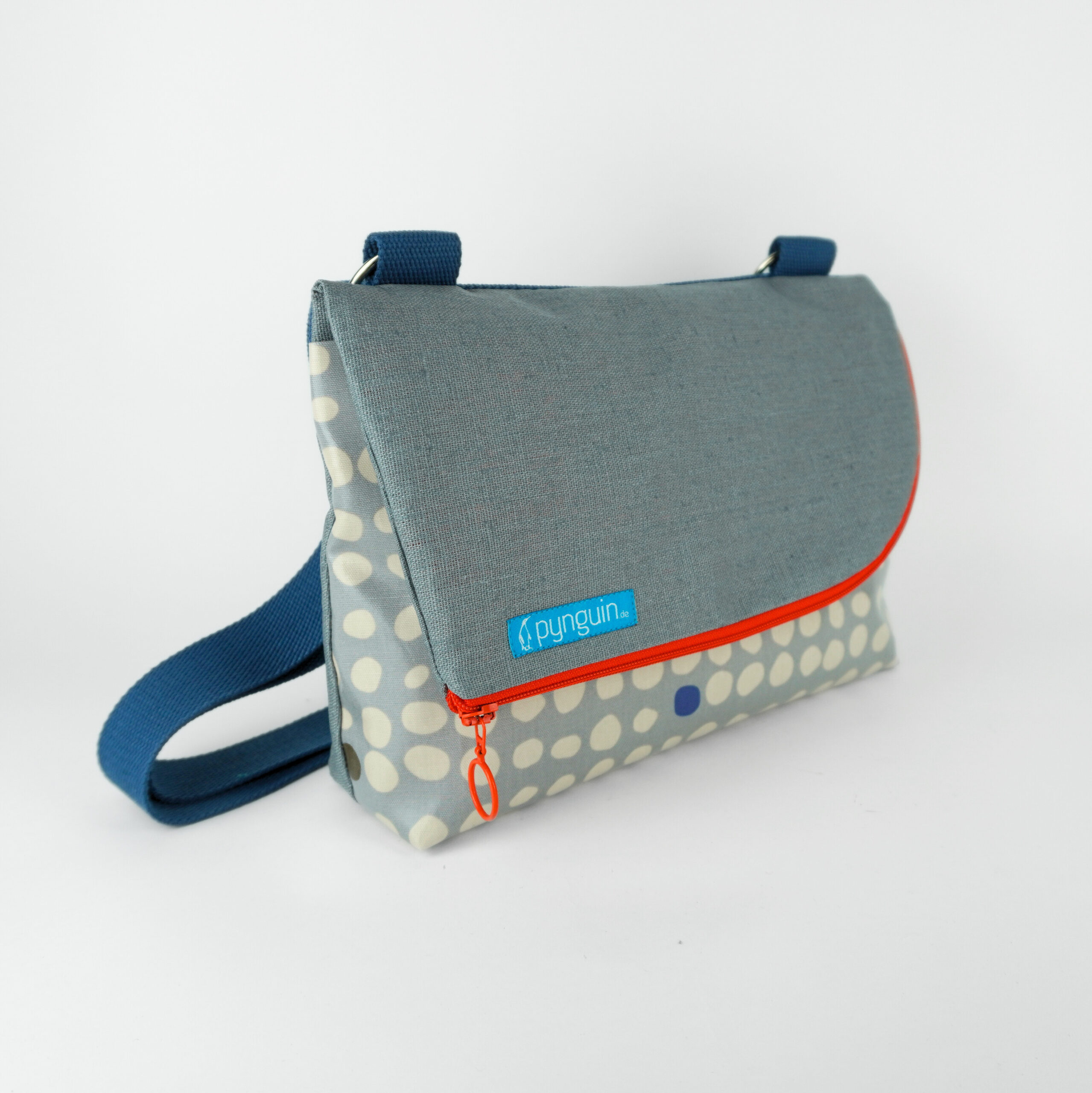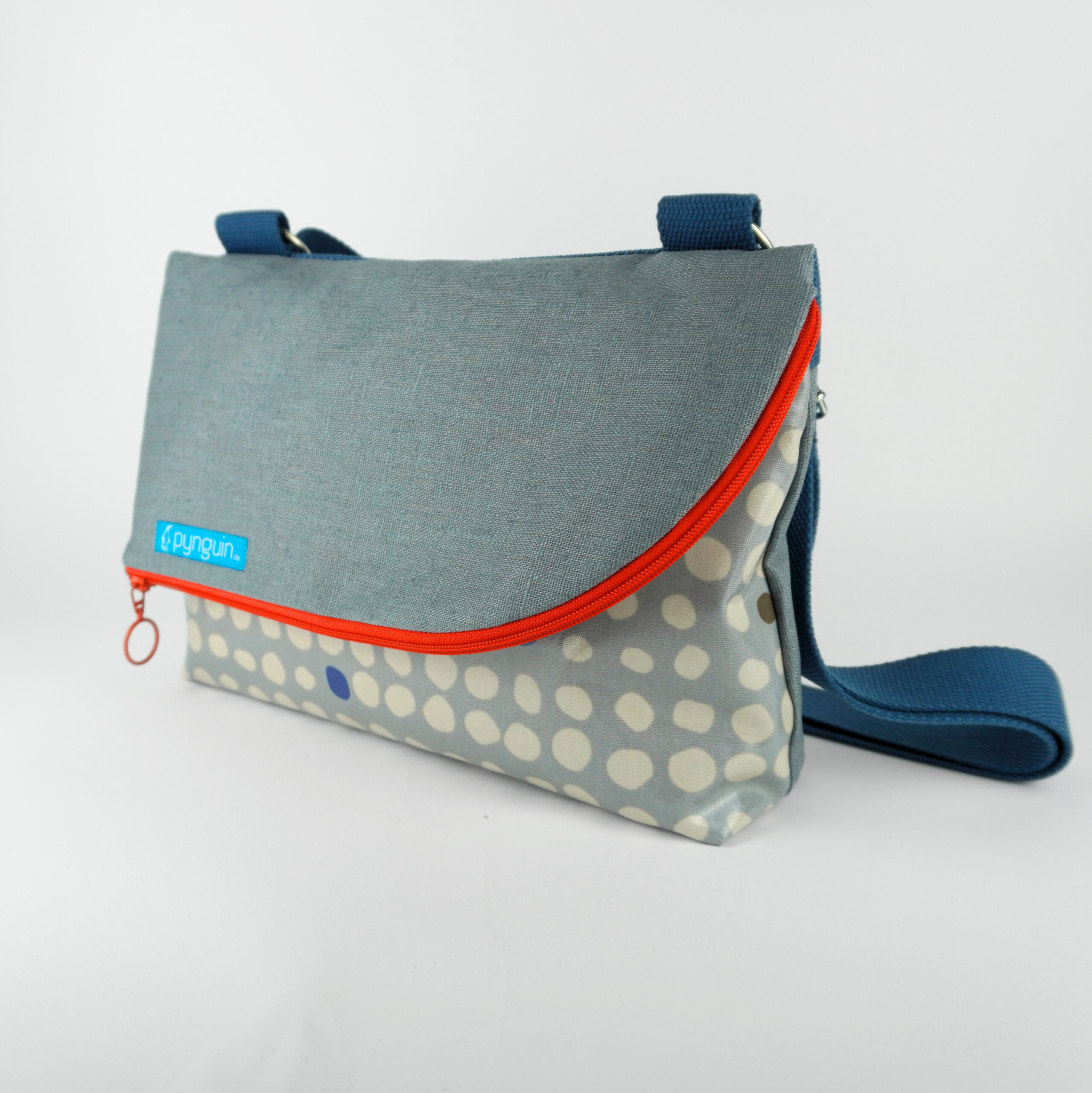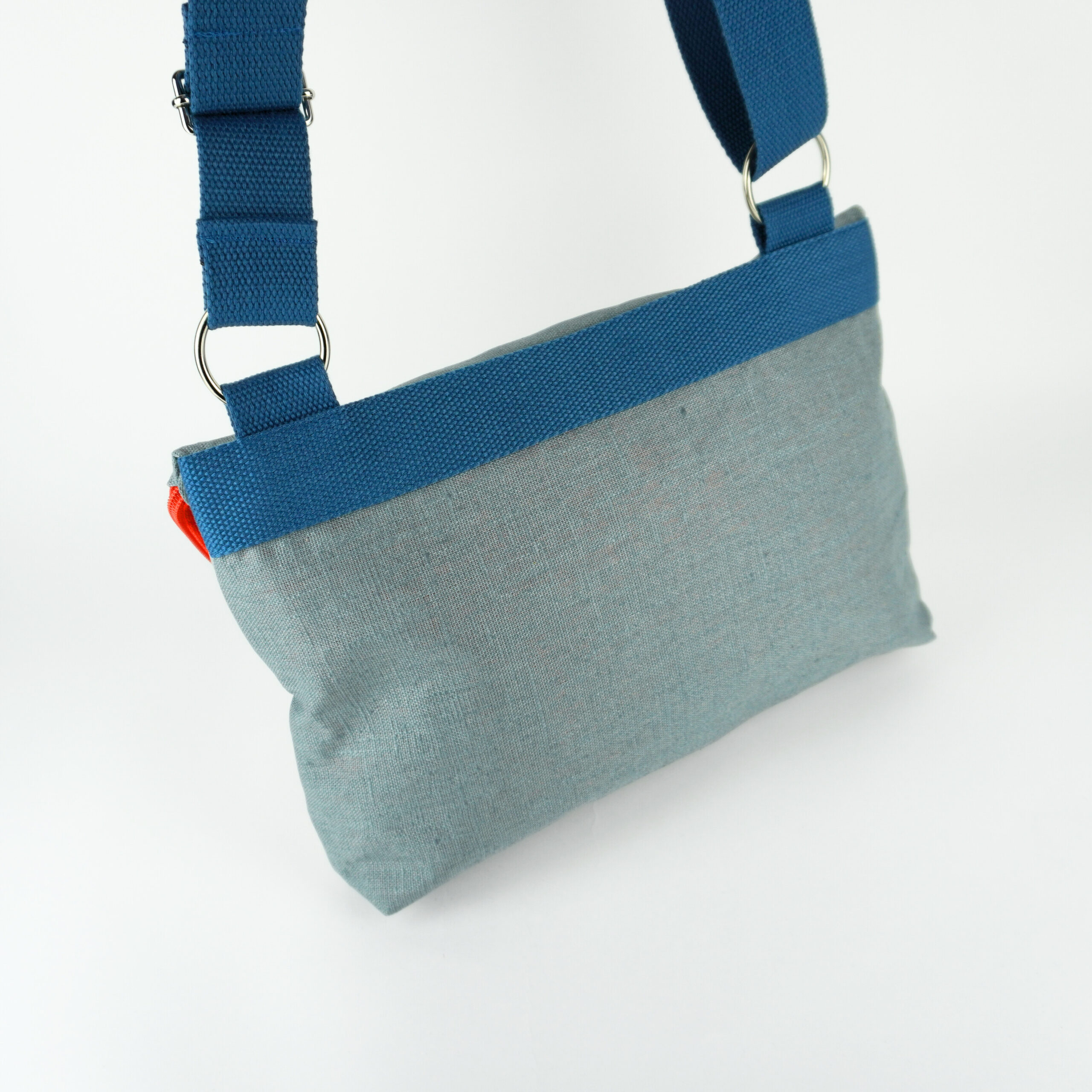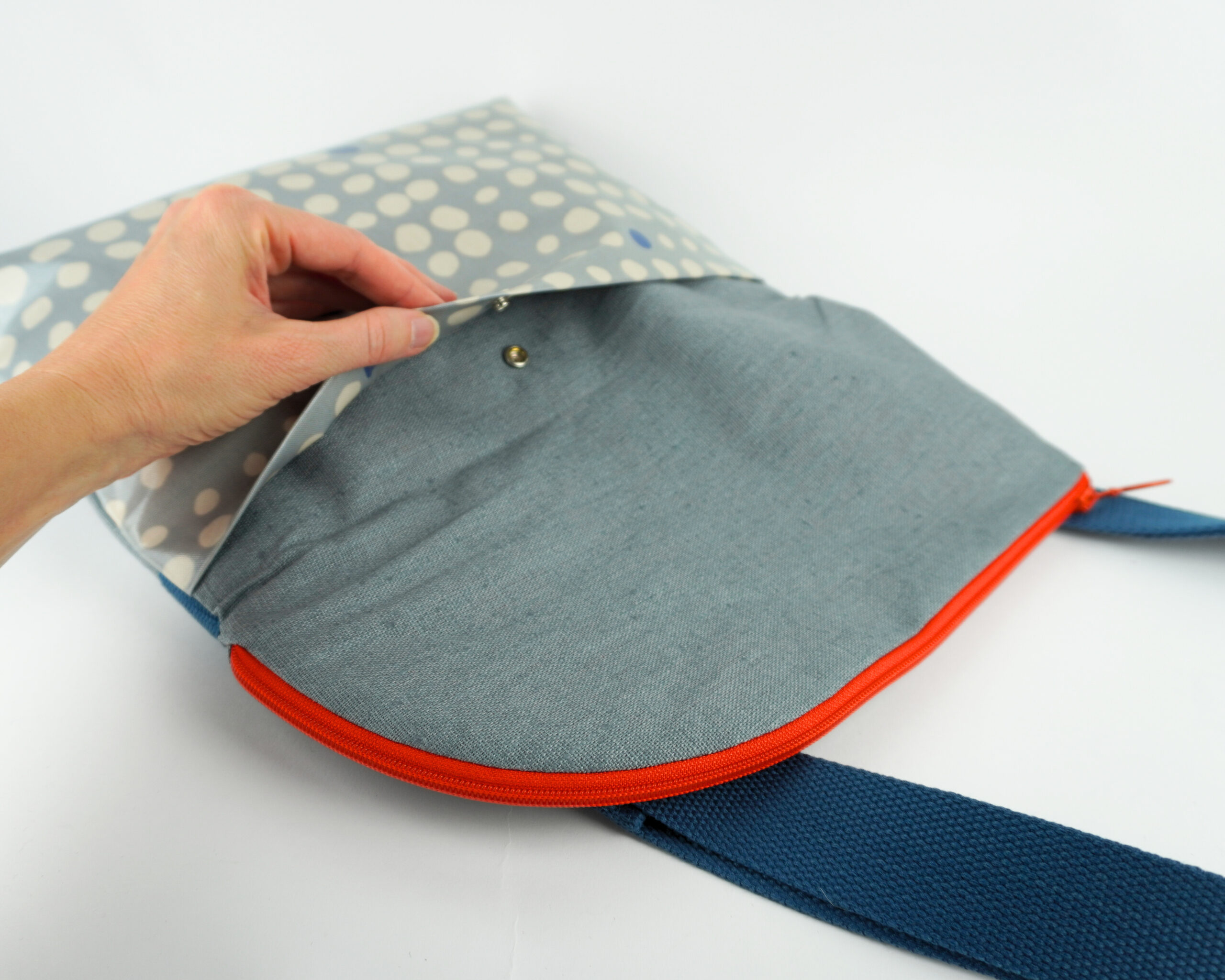 Diese Umhängtasche passt sich auch mal an. Wenn Du morgens nur mit Portemonnaie und Handy aus dem Haus gehst, ist die Klappe der Tasche unten und wenn Du auf dem Rückweg noch ein Brot und eine Gurke einkaufen möchtest, kannst Du einfach die Klappe der Tasche hochstehen lassen. So bietet die Tasche genügend Platz für einen kleinen Einkauf. Sie ist durch den runden Reißverschluss weit zu öffnen und man kommt gut an alle Sachen heran. Die Tasche ist mit einem Stoff von innen gegengefüttert. Es gibt eine Innentasche mit Reißverschluss. Ein weiteres Fach mit Druckknopf ist außen an der Tasche. Der Gurt ist verstellbar, so kann die Umhängtasche entweder einfach über die Schulter gehängt werden oder quer getragen werden.