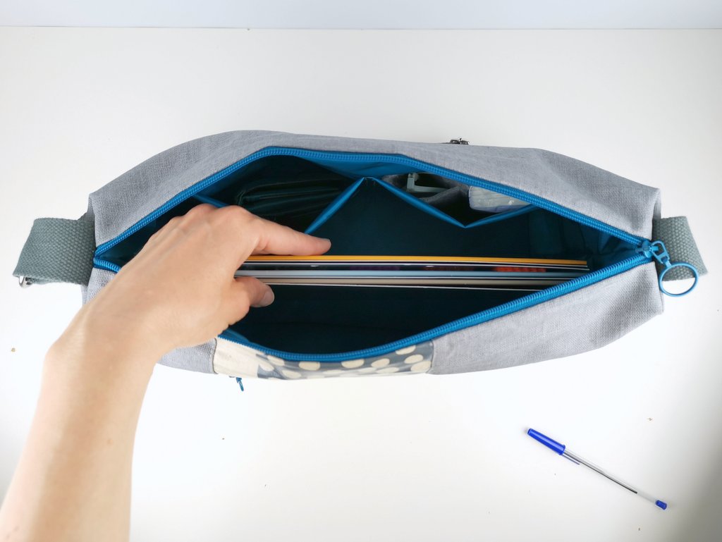 Die Tasche besteht außen wie auch innen aus wasserabweisenden Stoffen.