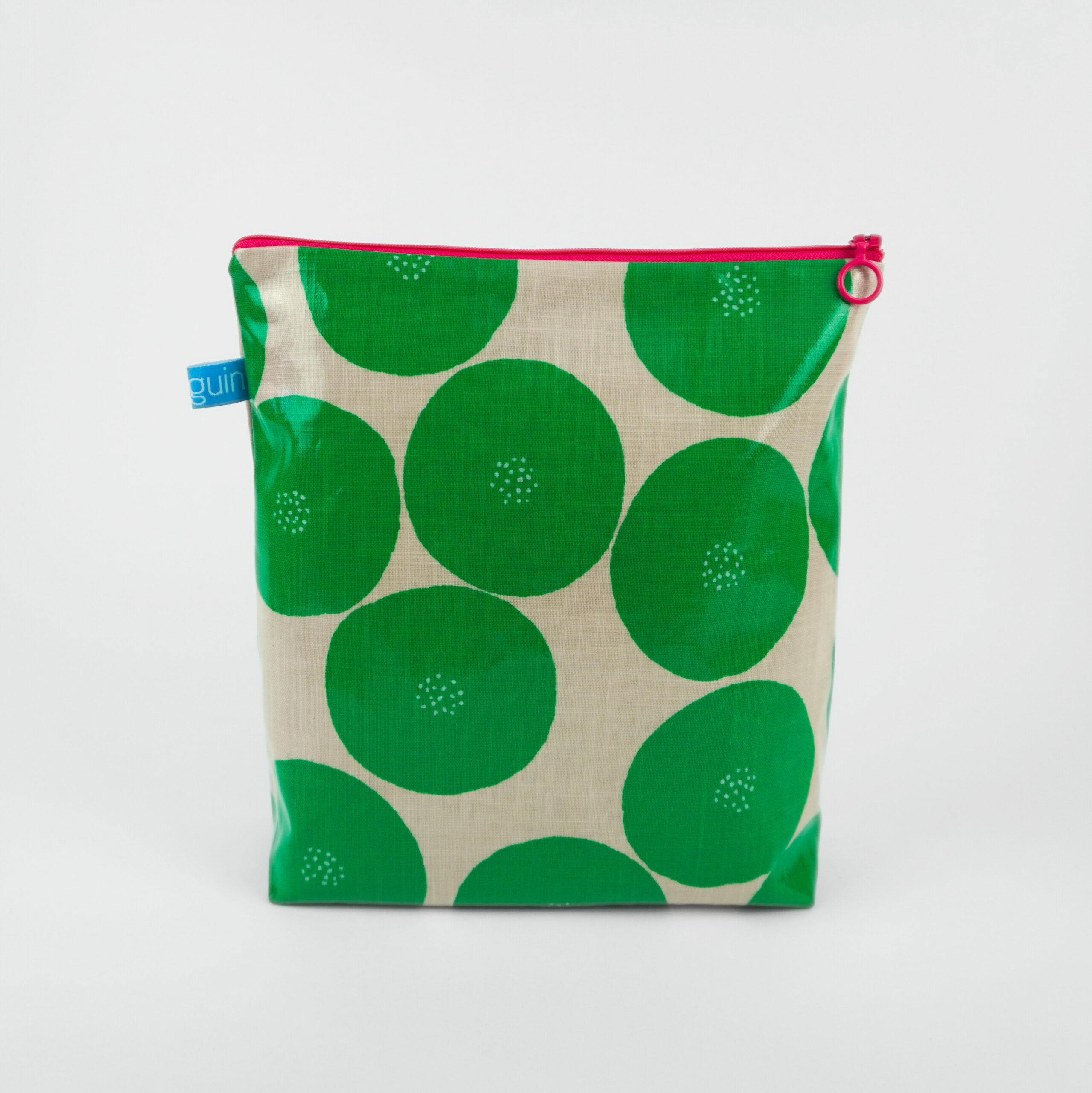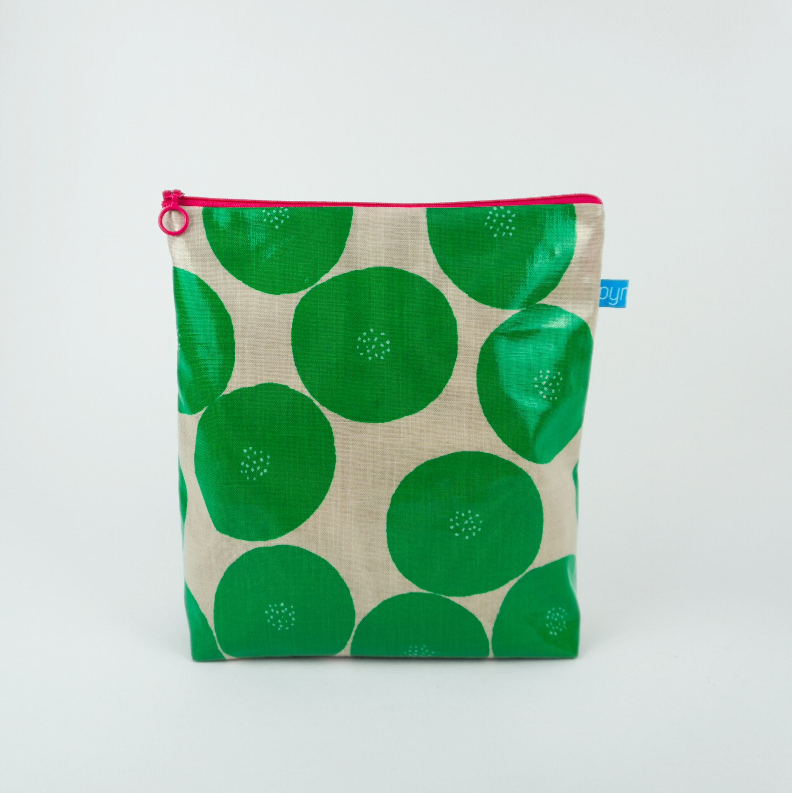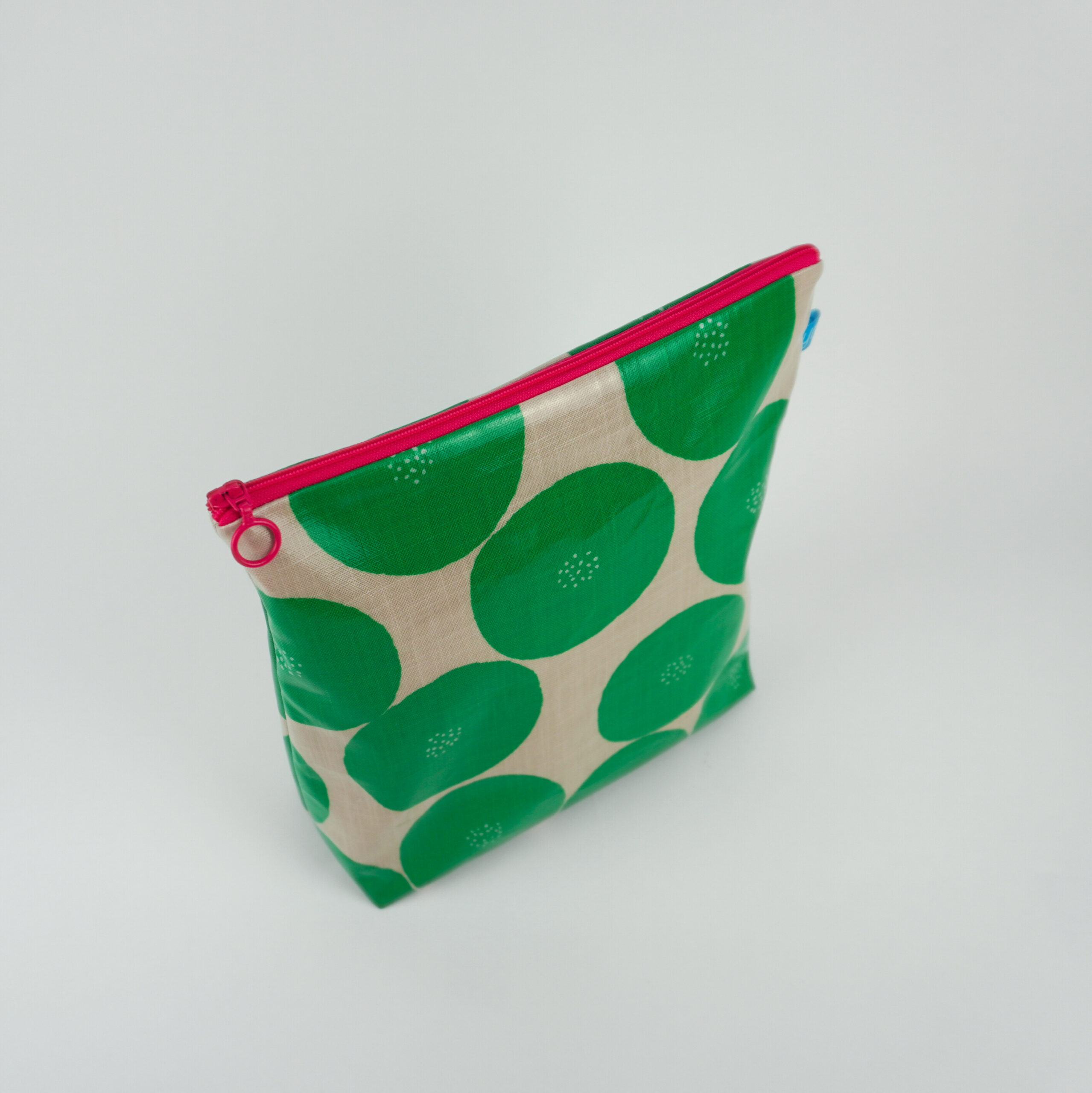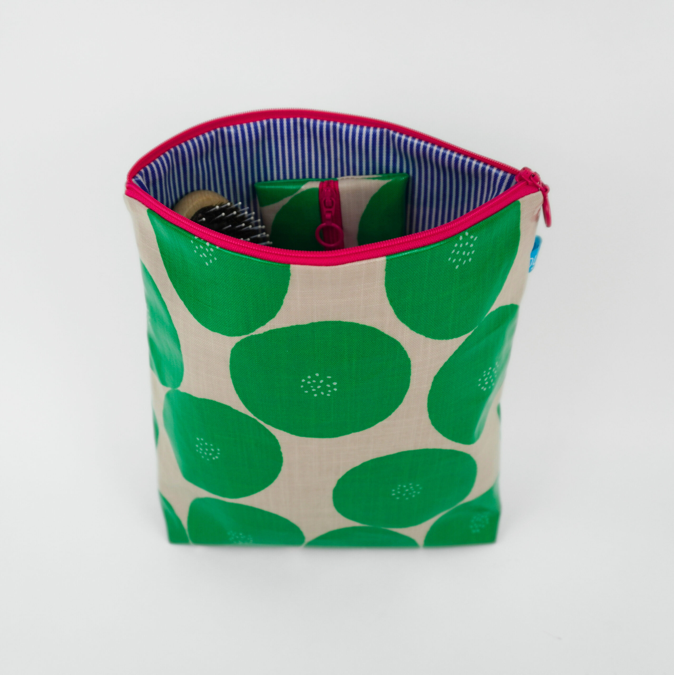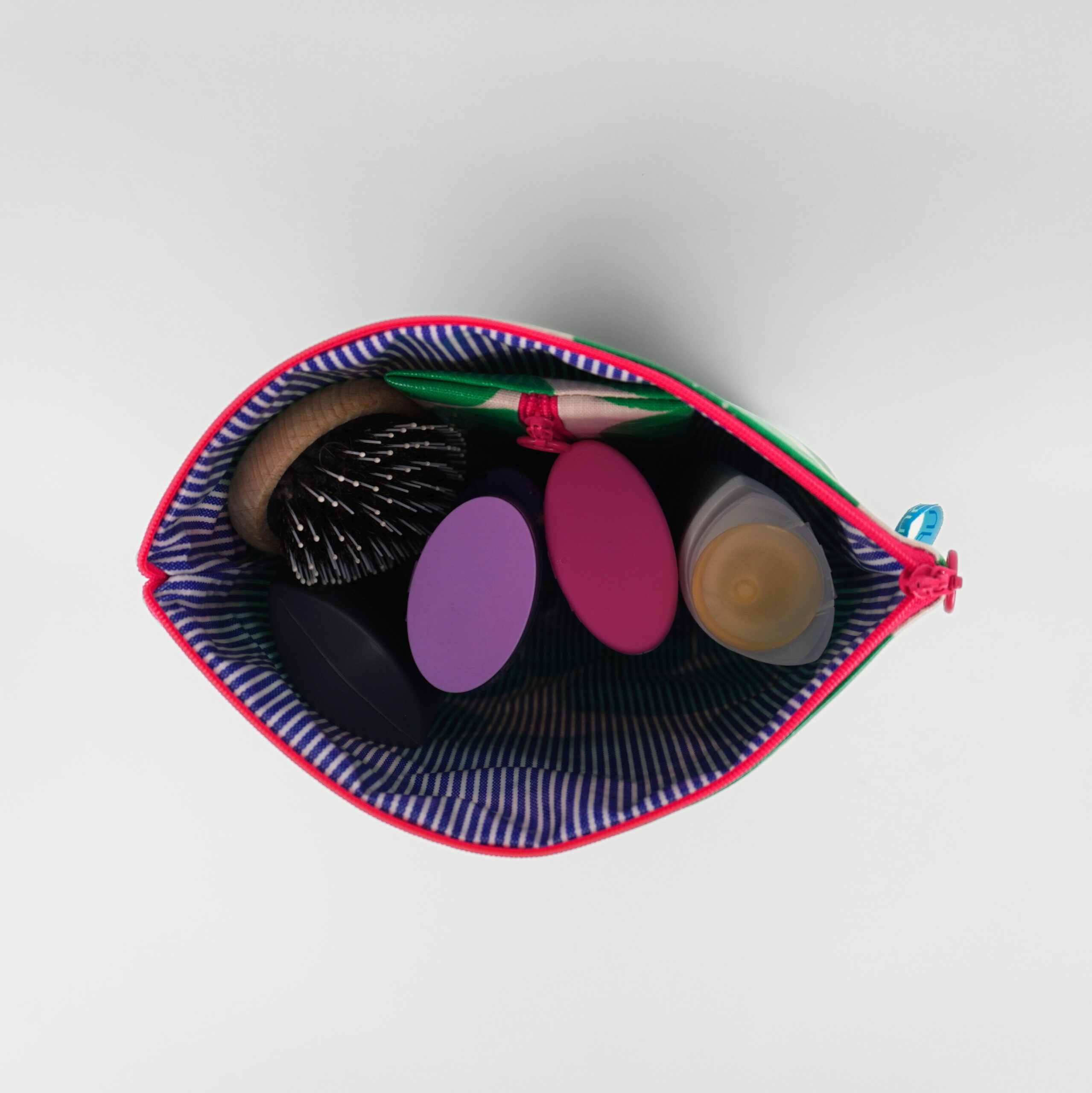 In die Kulturtasche kannst Du wunderbar Haarshampoo und Co. hineinstellen und mit auf die Reise nehmen. Wenn dann mal etwas auslaufen sollte, kannst Du ganz einfach die Tasche von Innen auswischen, da sie mit einem beschichteten Stoff gefüttert ist.