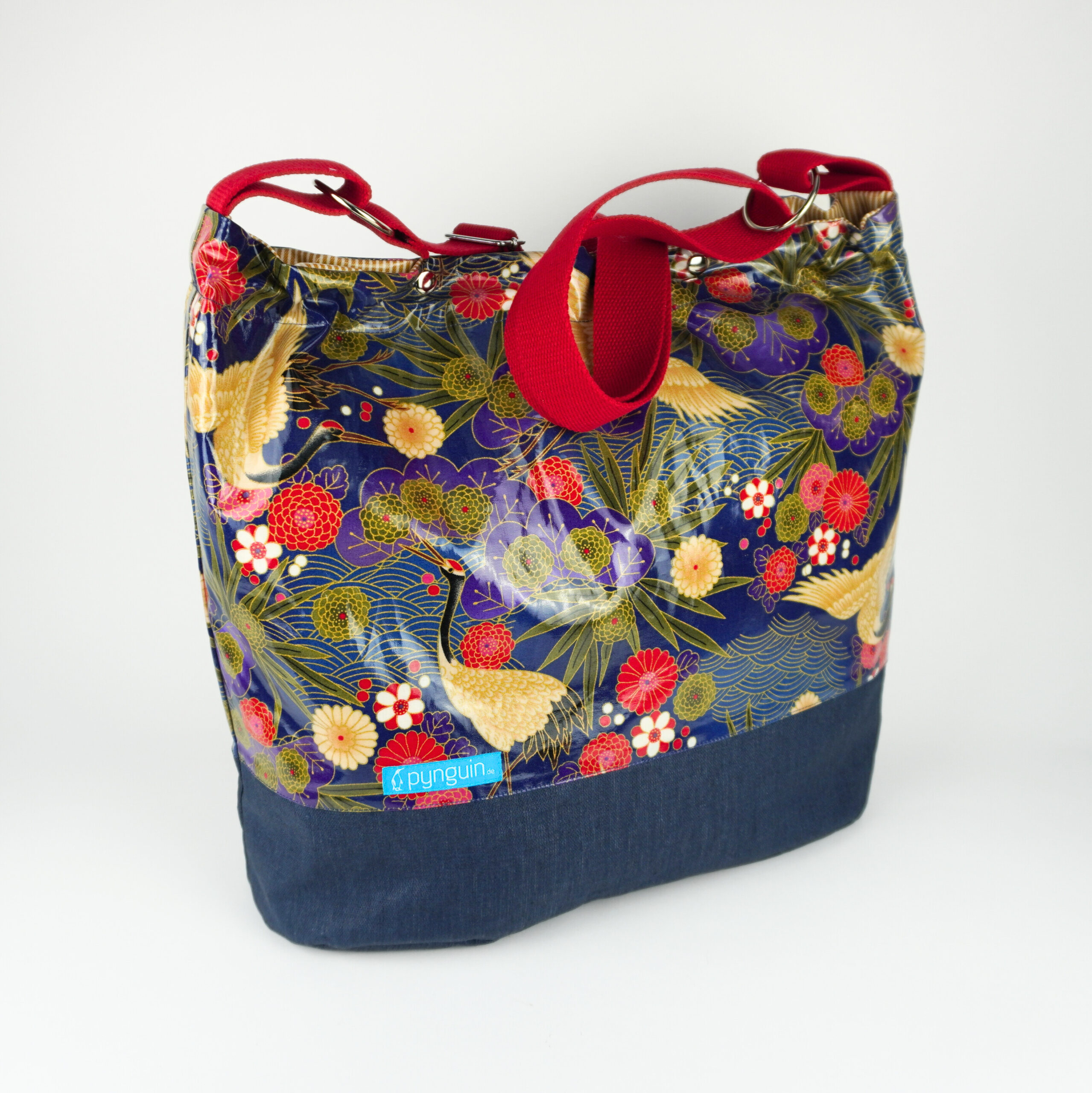 Das Gurtband ist verstellbar, so kann der Shopper entweder einfach über die Schulter gehängt werden oder quer getragen werden.