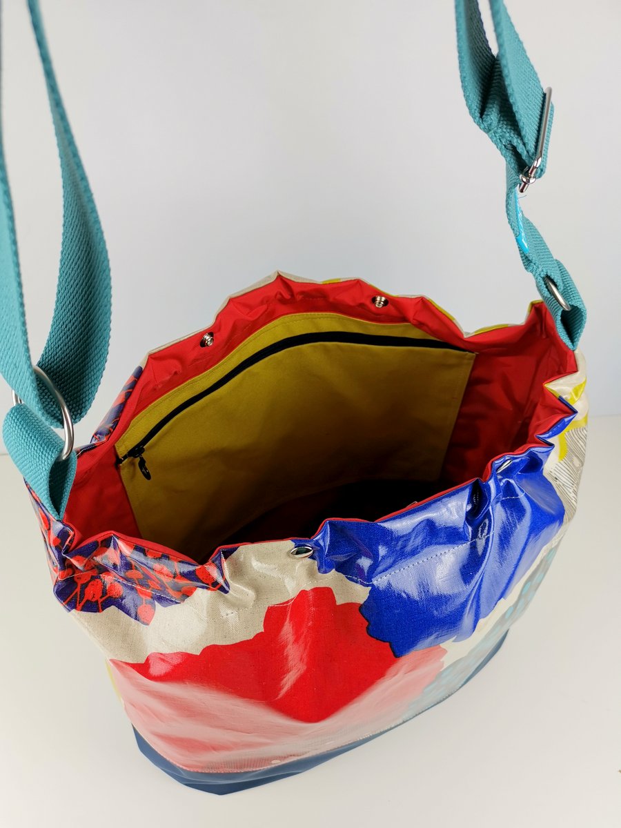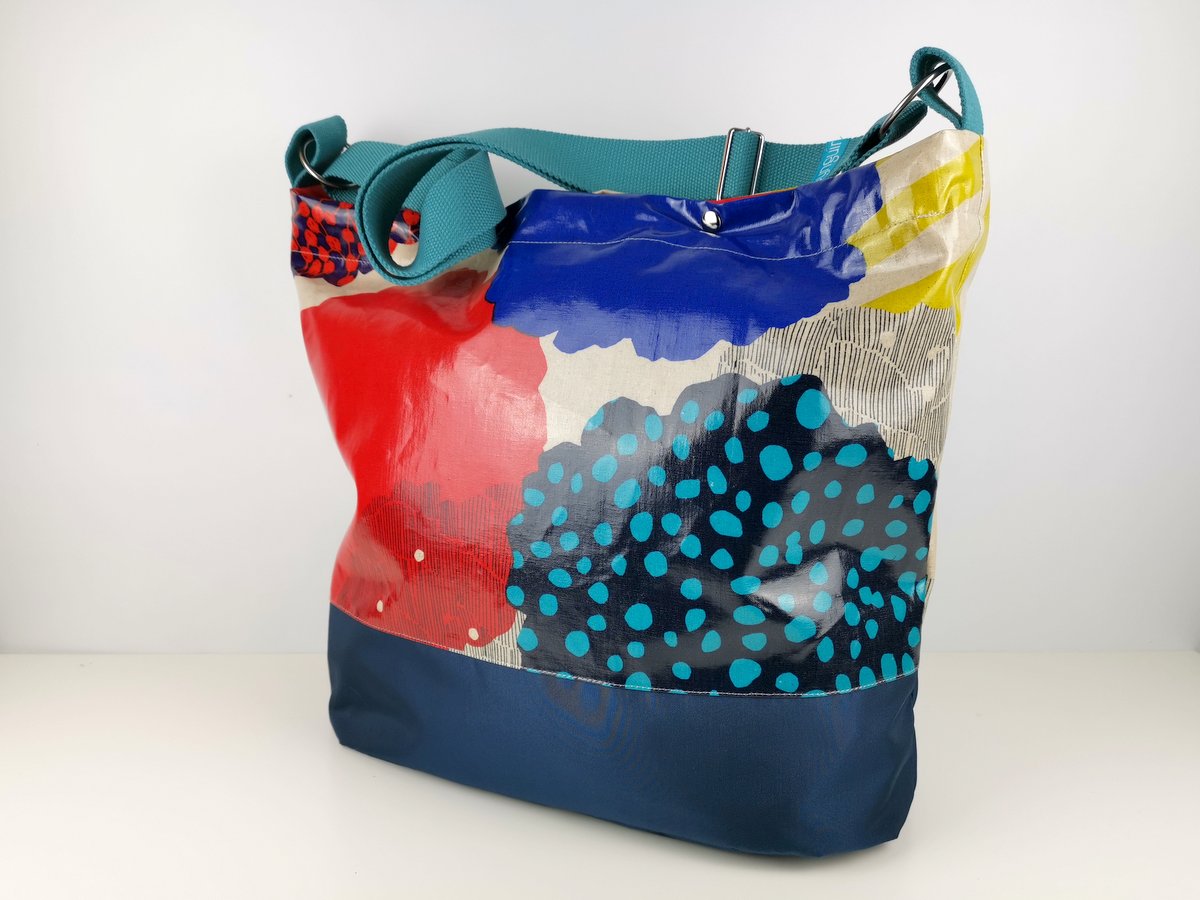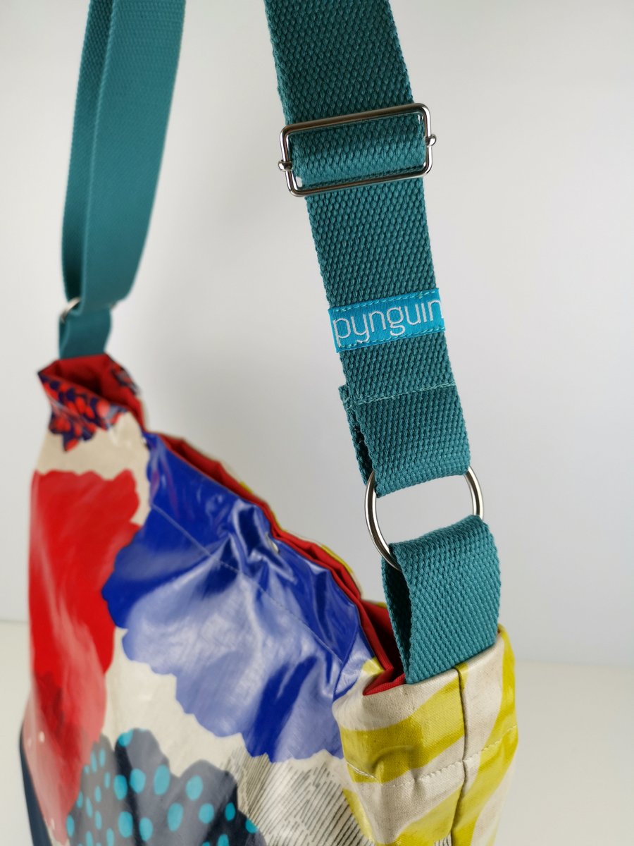 Das Gurtband ist verstellbar, so kann der Shopper entweder einfach über die Schulter gehängt werden oder quer getragen werden.