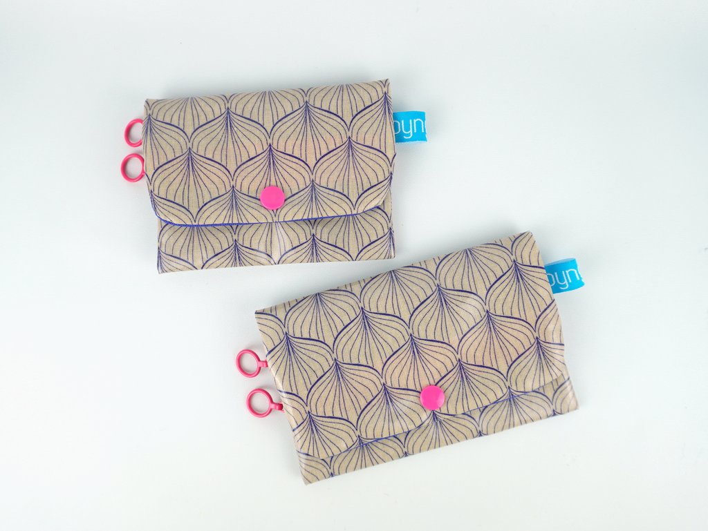 Das Portemonnaie besteht aus zwei beschichteten Stoffen, die abwischbar und damit nicht so schmutzanfällig sind.
