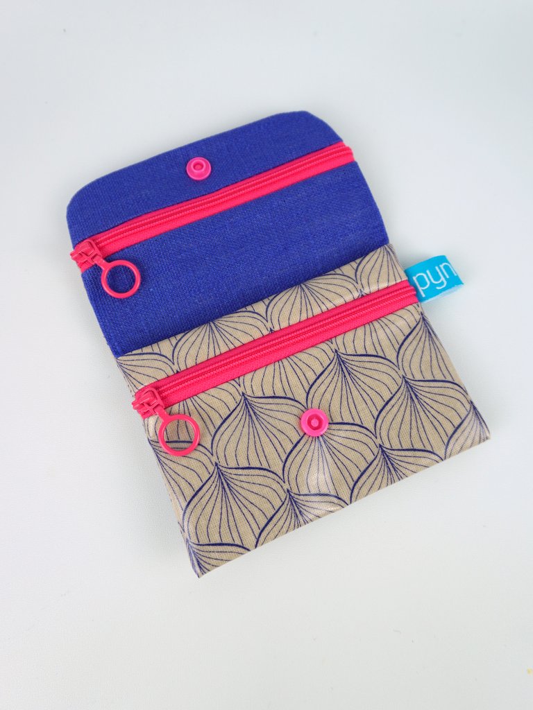 Flaches Portemonnaie mit 3 Fächern, ein Einsteckfach und zwei Reißverschlussfächern. Dort bekommt man alles wichtige unter und es passt trotzdem noch gut in die Hosentasche oder Jackentasche.