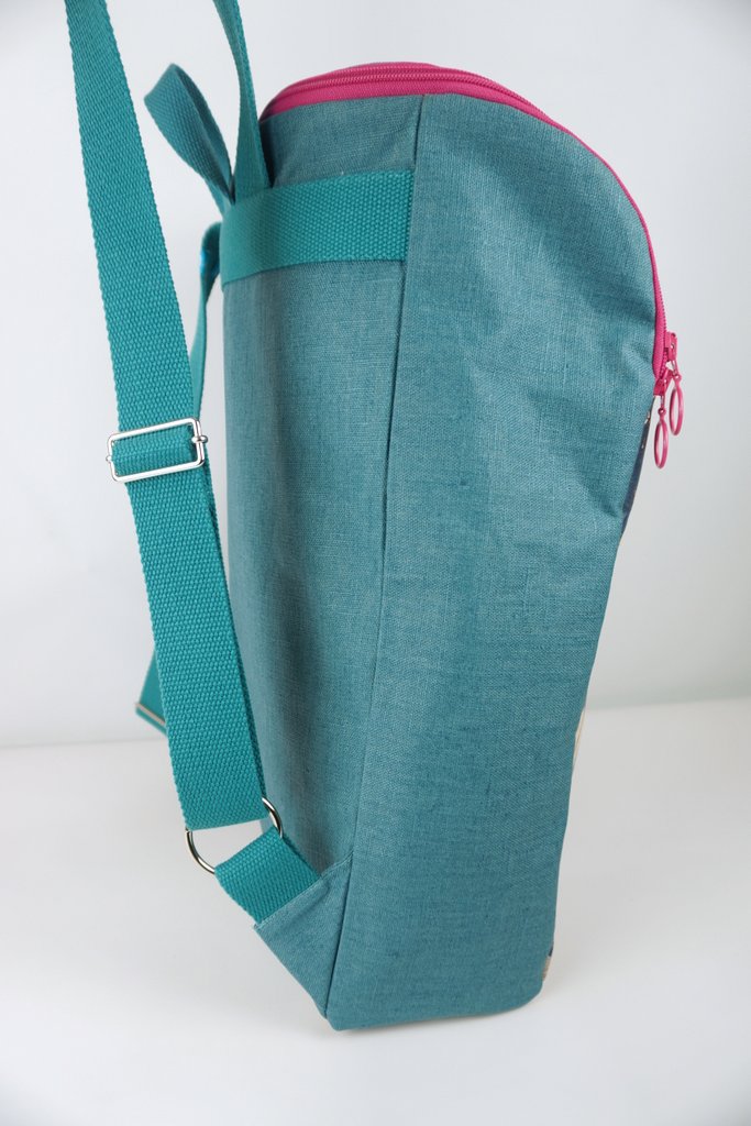 Mit seiner wasserabweisenden Oberfläche aus beschichtetem Leinen und beschichteter Baumwolle und dem gefütterten Innenmaterial aus Baumwolle ist er der perfekte Begleiter für jeden Anlass. Durch eine zusätzlich eingenähte Verstärkung ist der Rucksack formstabil und robust. Er ist aber trotzdem leicht und gut zu tragen.