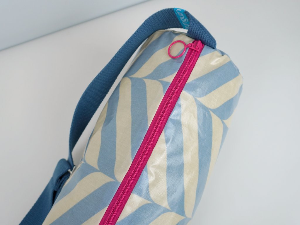 Der Tragegurt ist verstellbar. Die Yogamattentasche kann wie eine Crossbody Tasche getragen werden oder einfach so.